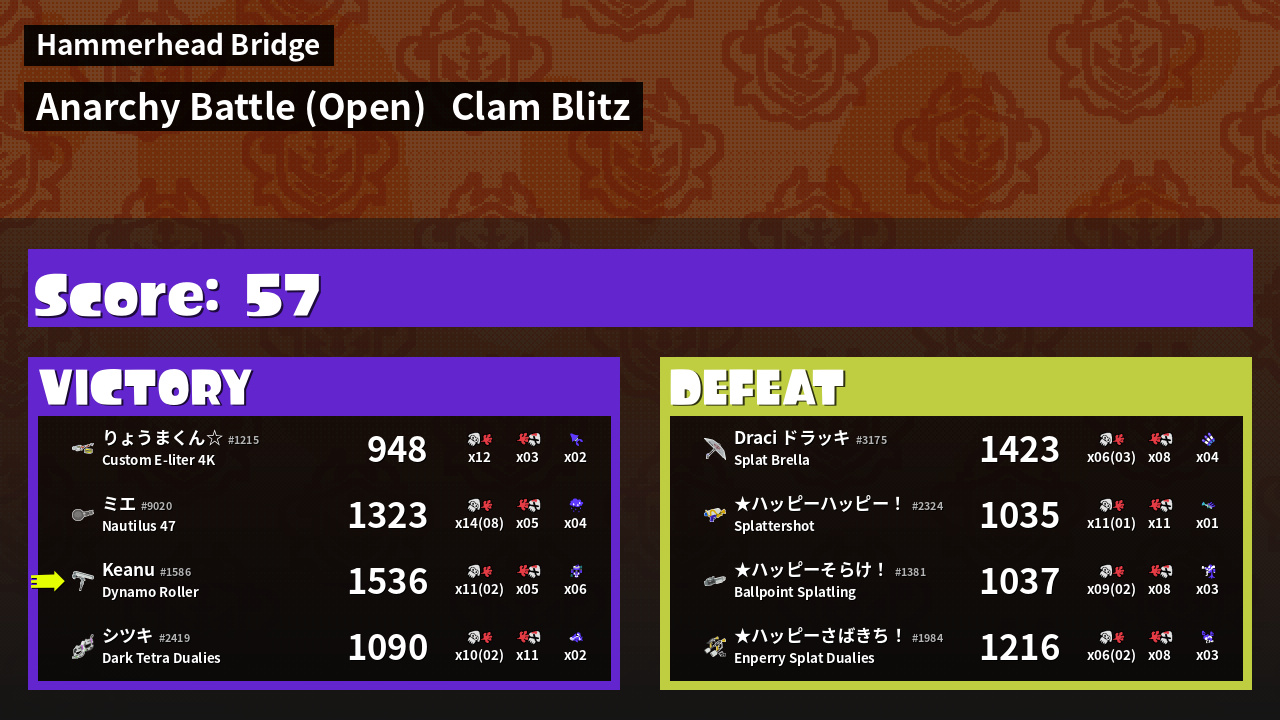 | Mode | Clam Blitz - Anarchy Battle (Open) | ||
