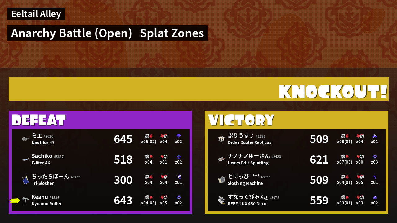 | Mode | Splat Zones - Anarchy Battle (Open) | ||