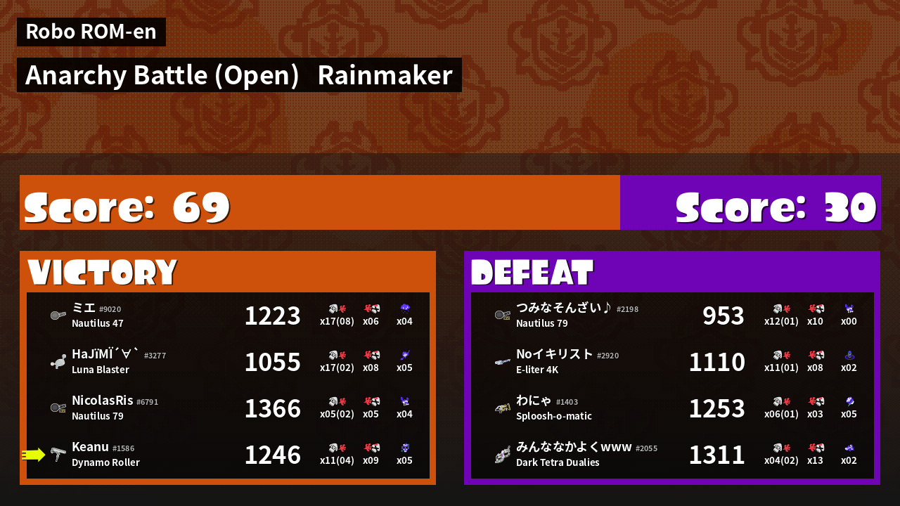 | Mode | Rainmaker - Anarchy Battle (Open) | ||