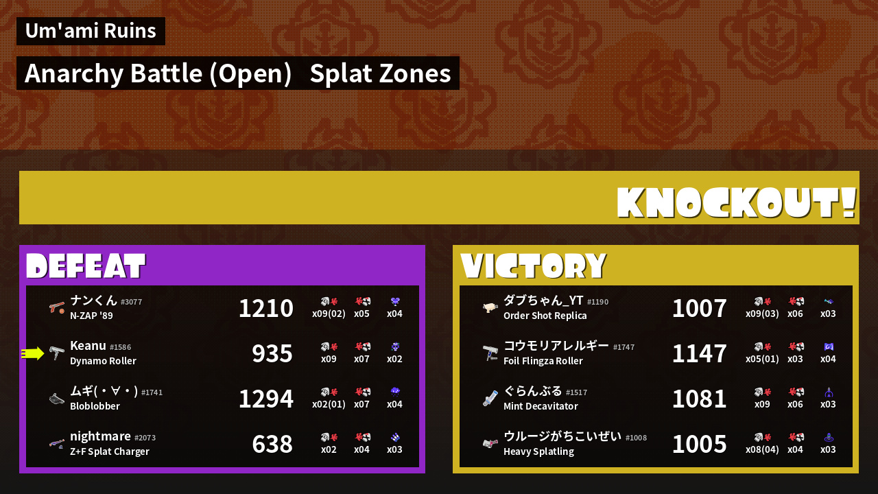| Mode | Splat Zones - Anarchy Battle (Open) | ||