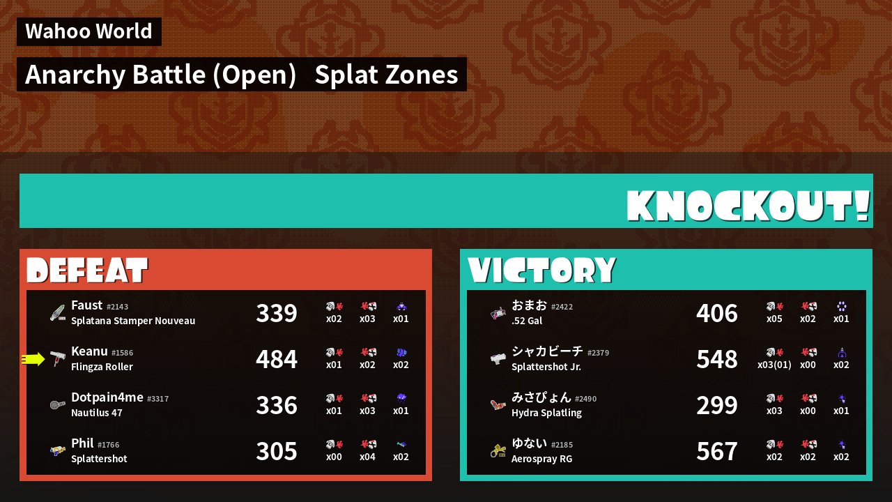 | Mode | Splat Zones - Anarchy Battle (Open) | ||