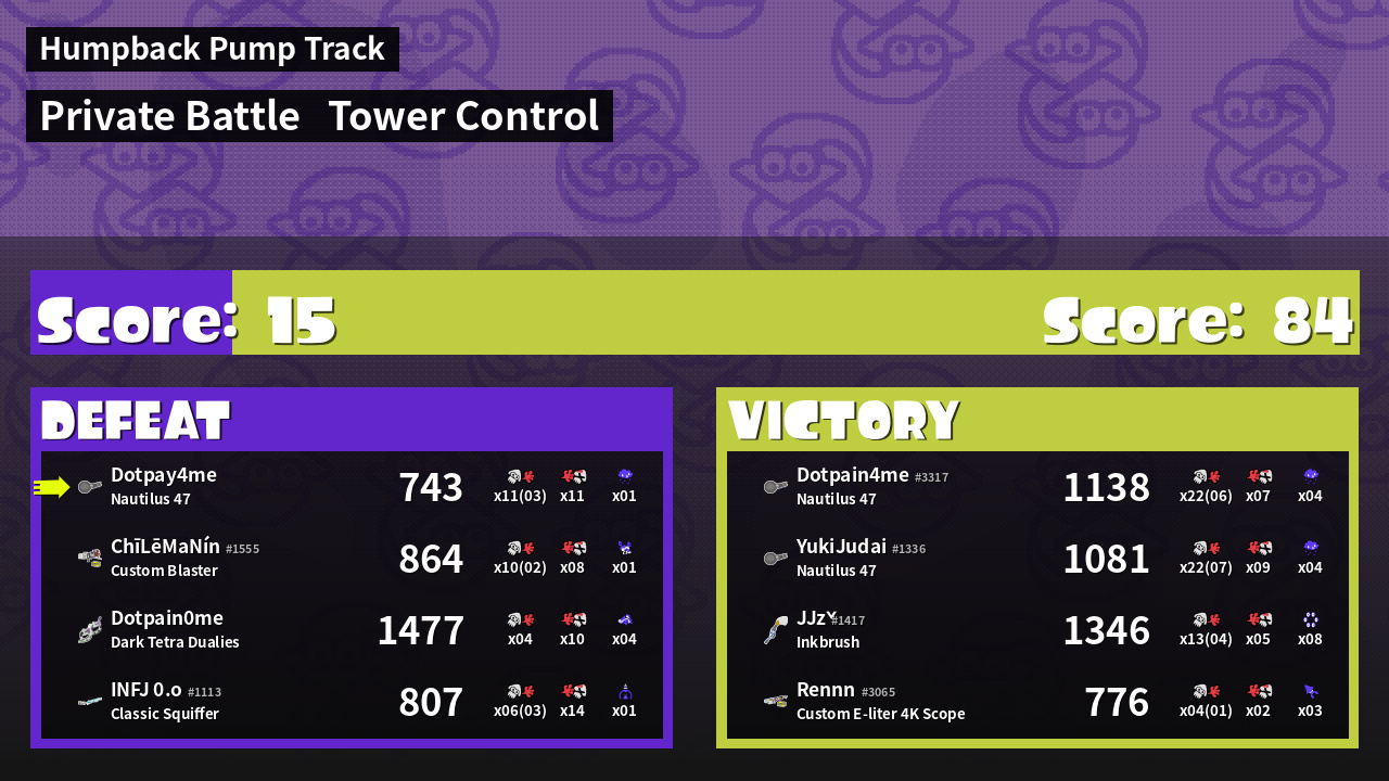| Medals | #1 Overall Splatter #1 Popular Target #1 Enemy Splatter | ||
