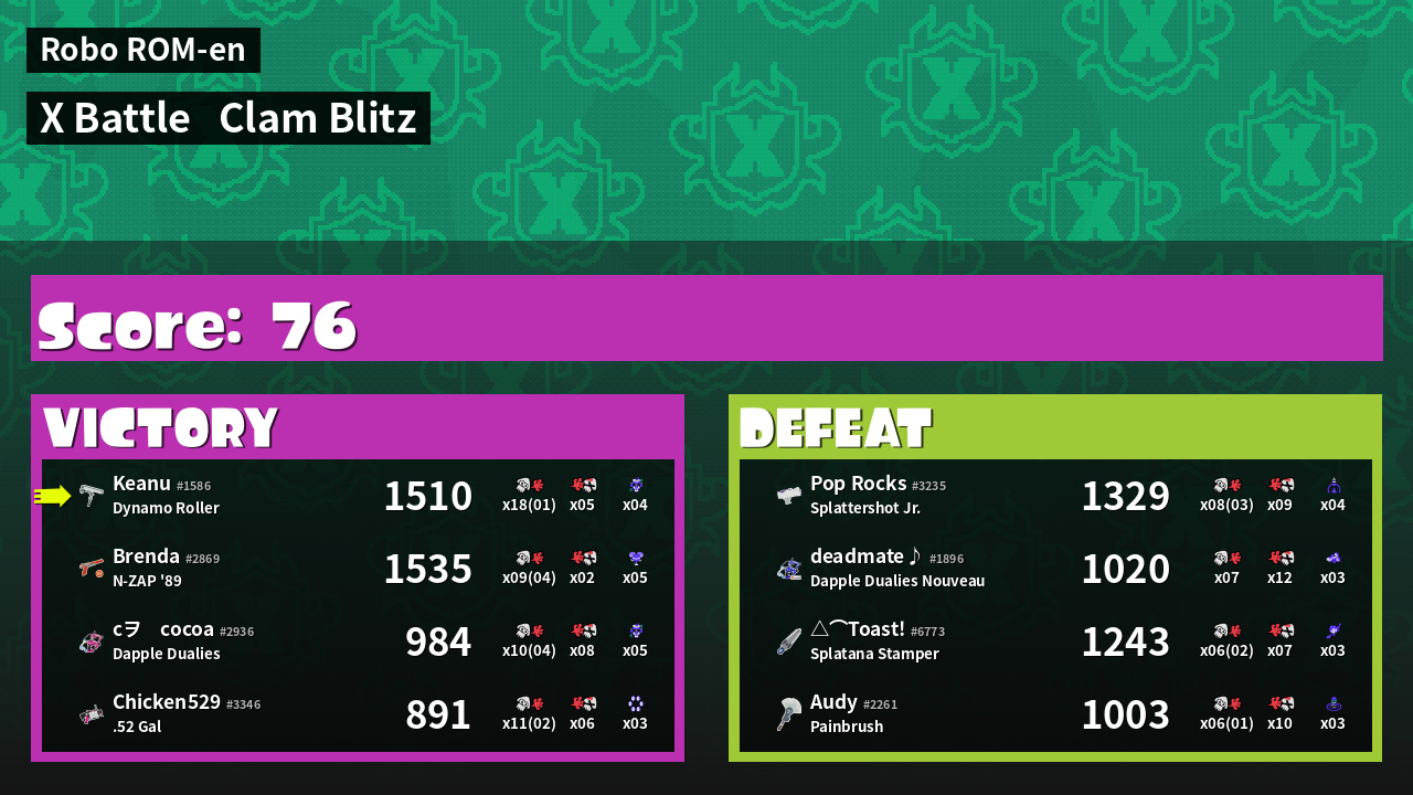 | Weapon | Dynamo Roller ( Sprinkler / Tacticooler) | ||