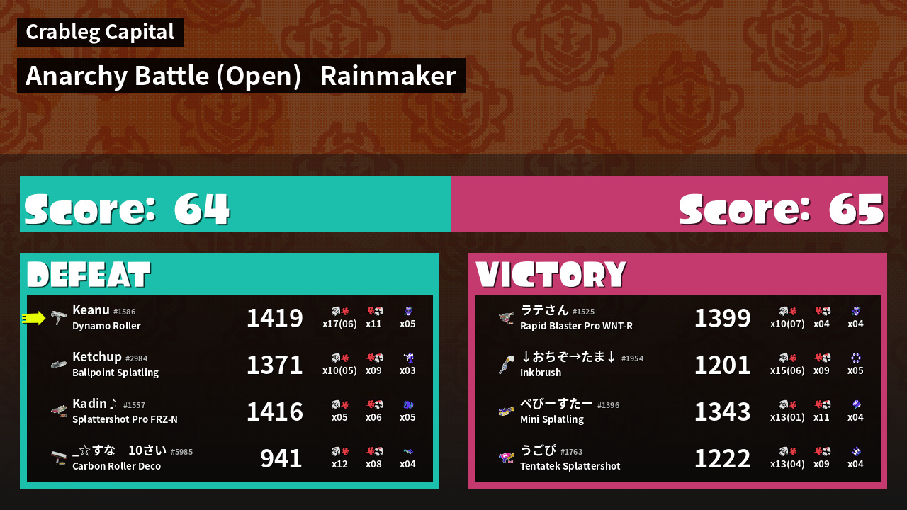 | Mode | Rainmaker - Anarchy Battle (Open) | ||