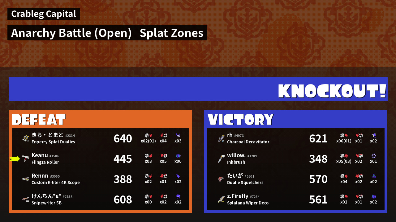 | Mode | Splat Zones - Anarchy Battle (Open) | ||