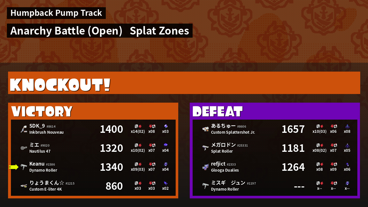 | Mode | Splat Zones - Anarchy Battle (Open) | ||
