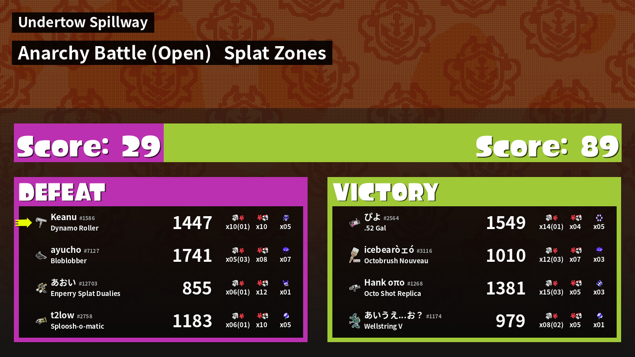 | Mode | Splat Zones - Anarchy Battle (Open) | ||