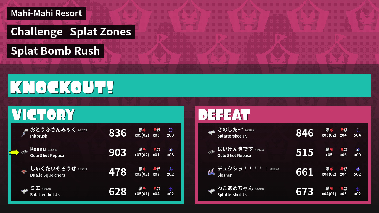 | Challenge | Splat Bomb Rush Let the Splat Bombs fly in this free-for-all! | ||
