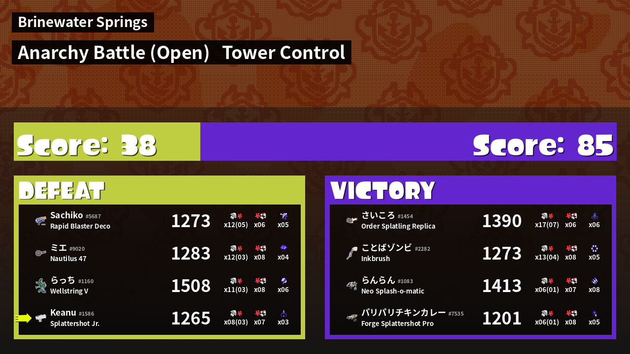 | Mode | Tower Control - Anarchy Battle (Open) | ||