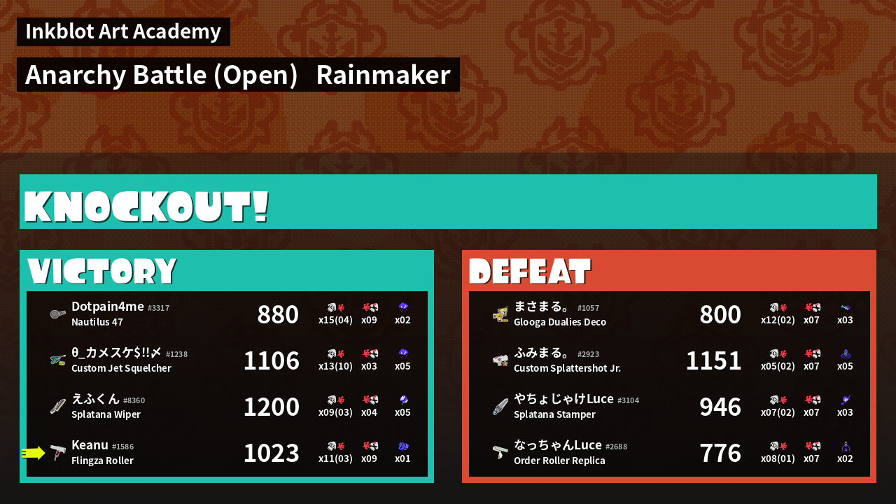 | Mode | Rainmaker - Anarchy Battle (Open) | ||