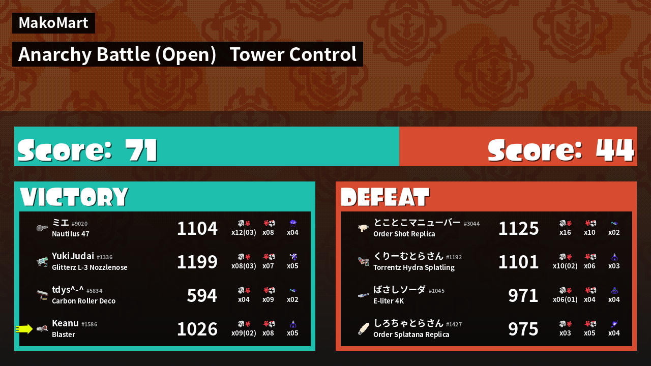 | Mode | Tower Control - Anarchy Battle (Open) | ||