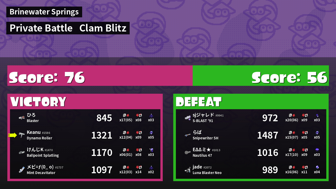 | Mode | Clam Blitz - Private Battle | ||