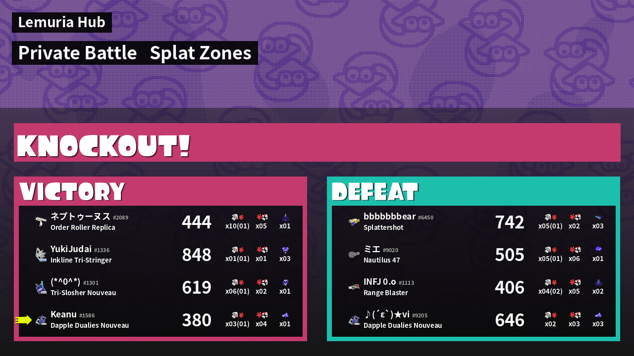 | Medals | #1 Splat Assister #1 Damage Taker First Splat! | ||