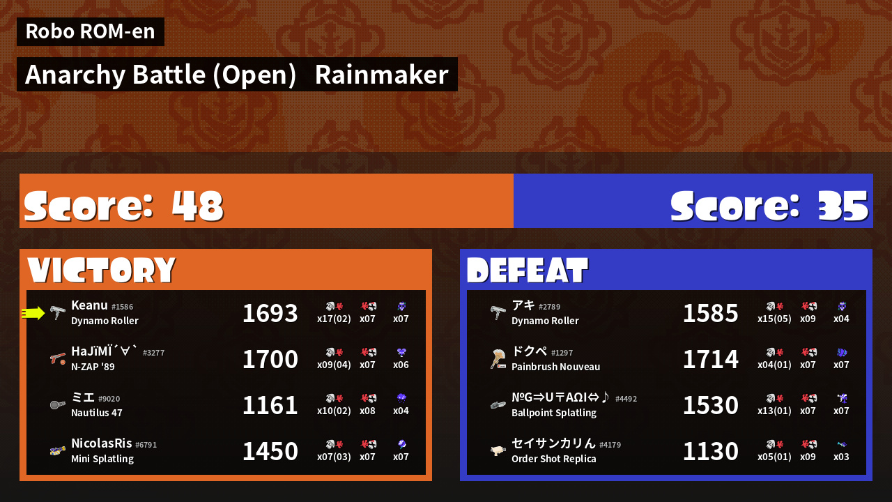 | Mode | Rainmaker - Anarchy Battle (Open) | ||