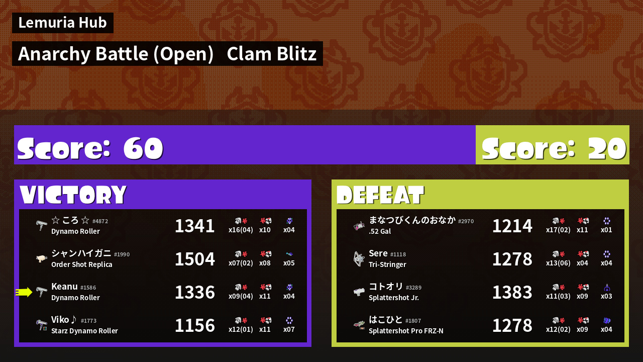 | Mode | Clam Blitz - Anarchy Battle (Open) | ||