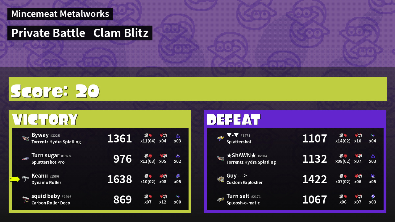| Medals | #1 Score Booster #1 Turf Inker #1 Enemy Splatter | ||