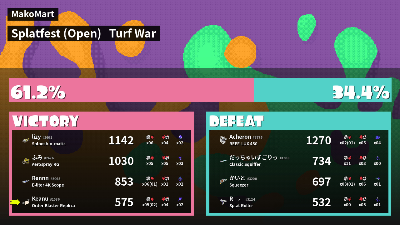 | Medals | #1 Splat Assister #1 Base Defender #1 Ink Consumer | ||