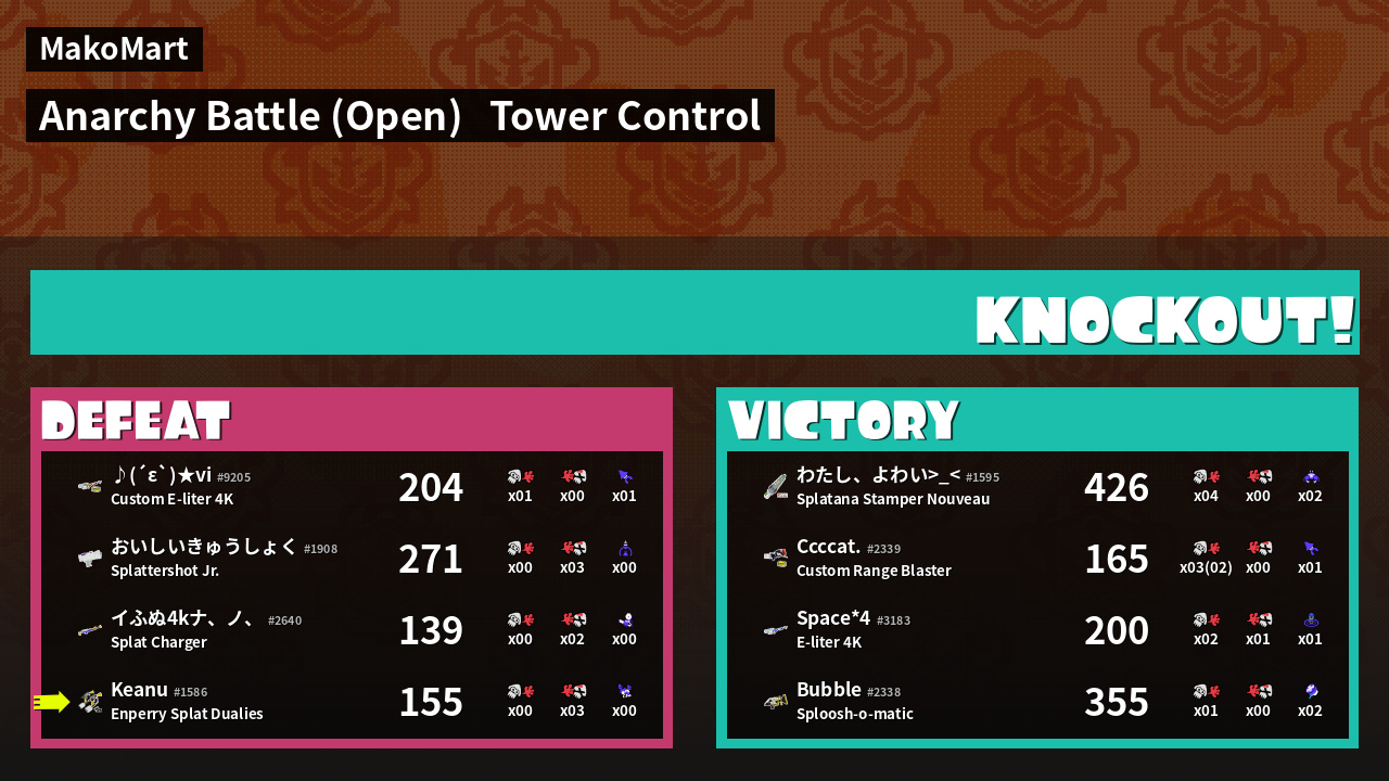 | Mode | Tower Control - Anarchy Battle (Open) | ||