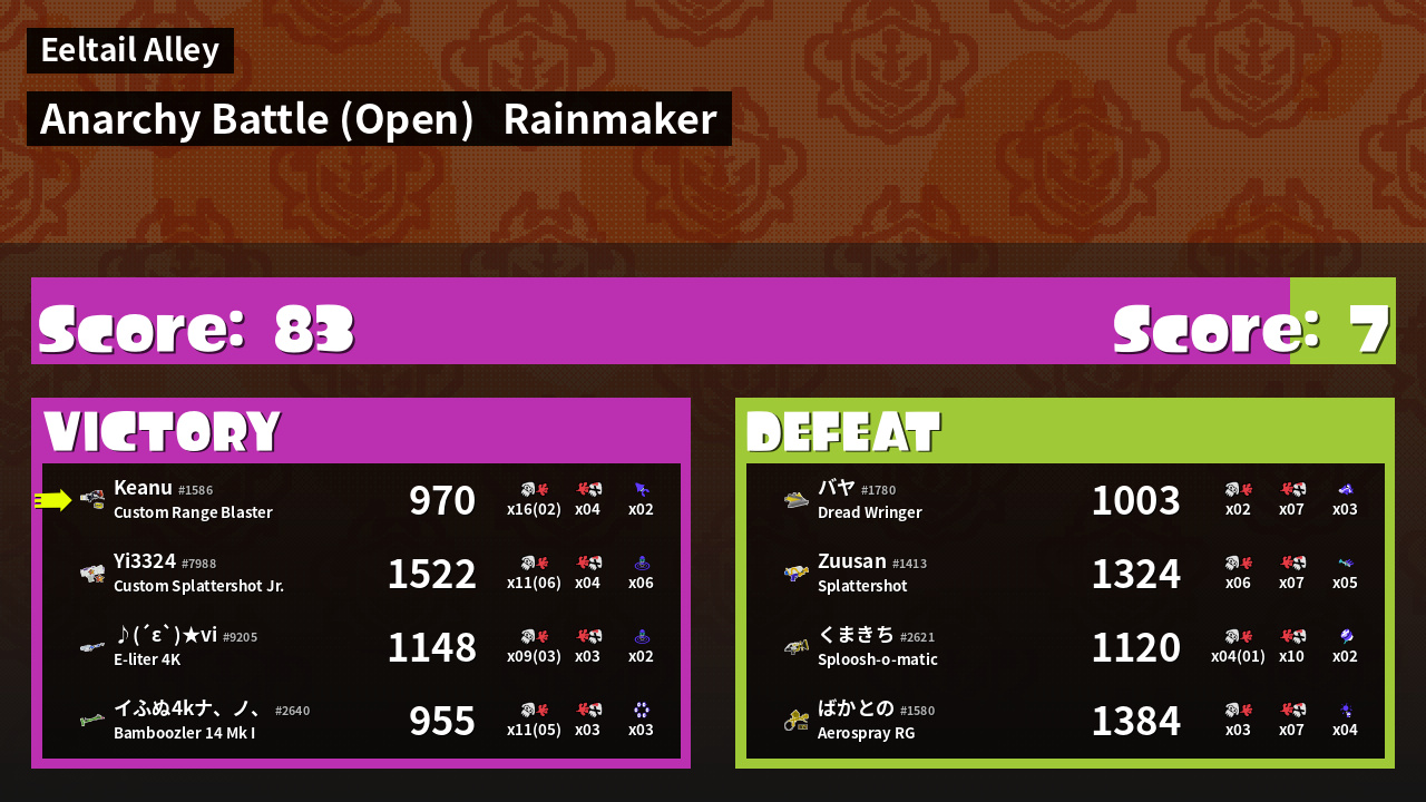 | Mode | Rainmaker - Anarchy Battle (Open) | ||