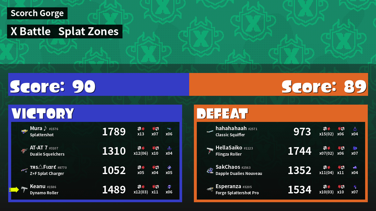 | Mode | Splat Zones - X Battle | ||