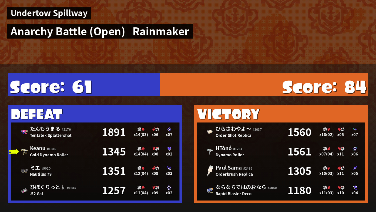 | Mode | Rainmaker - Anarchy Battle (Open) | ||