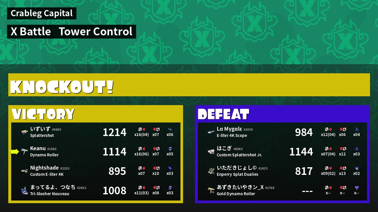 | Medals | #1 Overall Splatter #1 Score Booster Record-Score Setter | ||