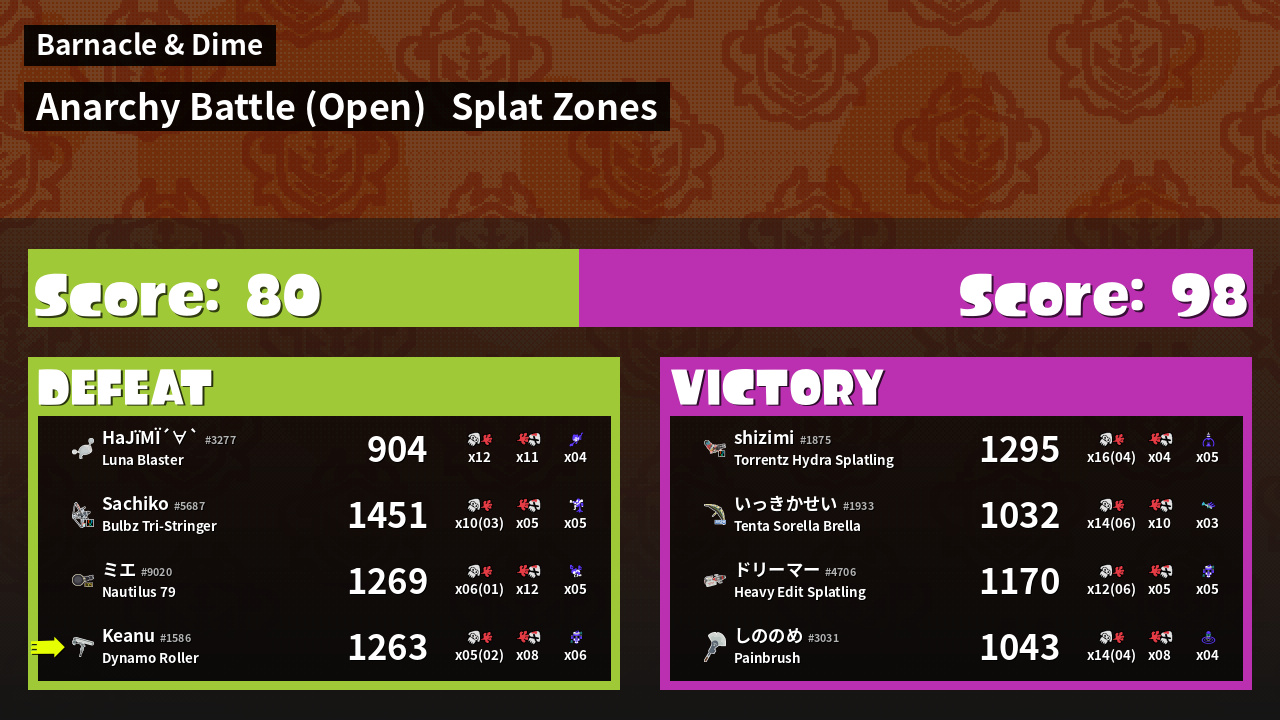 | Mode | Splat Zones - Anarchy Battle (Open) | ||