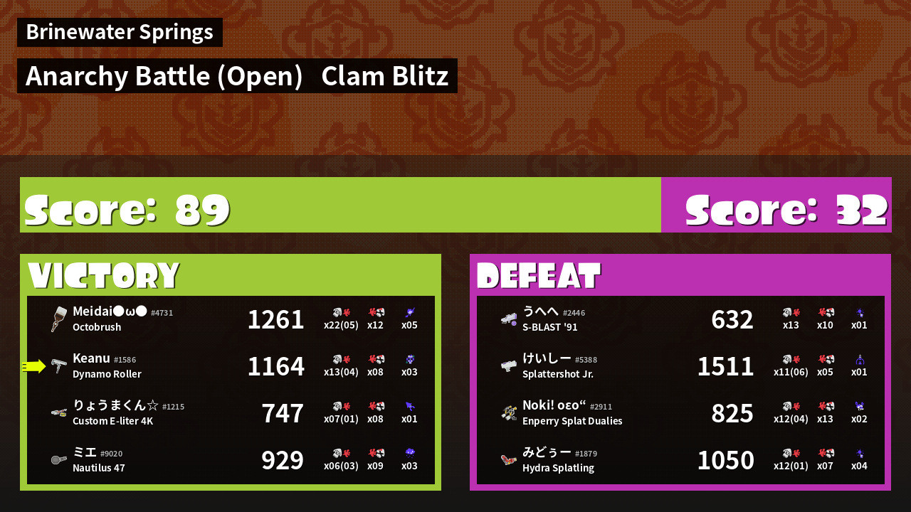 | Mode | Clam Blitz - Anarchy Battle (Open) | ||