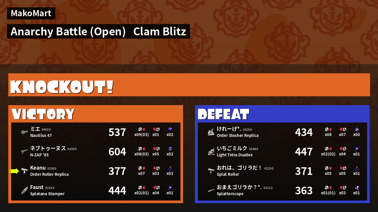 | Mode | Clam Blitz - Anarchy Battle (Open) | ||
