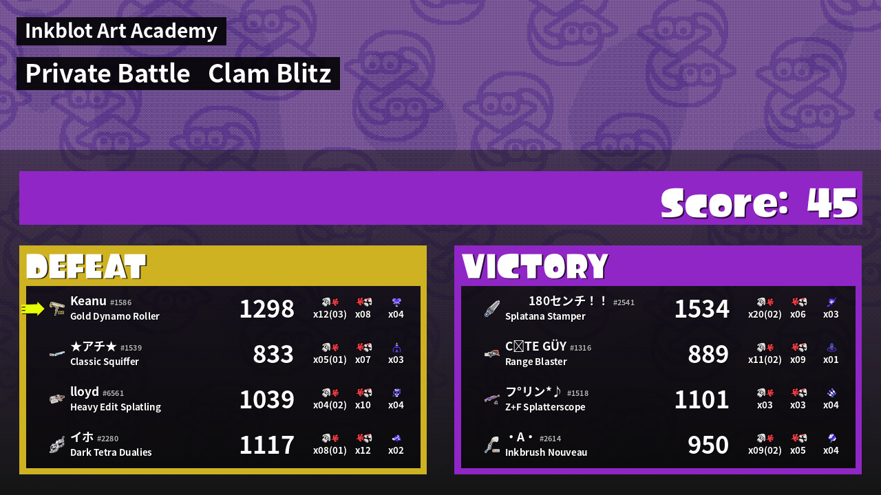 | Mode | Clam Blitz - Private Battle | ||