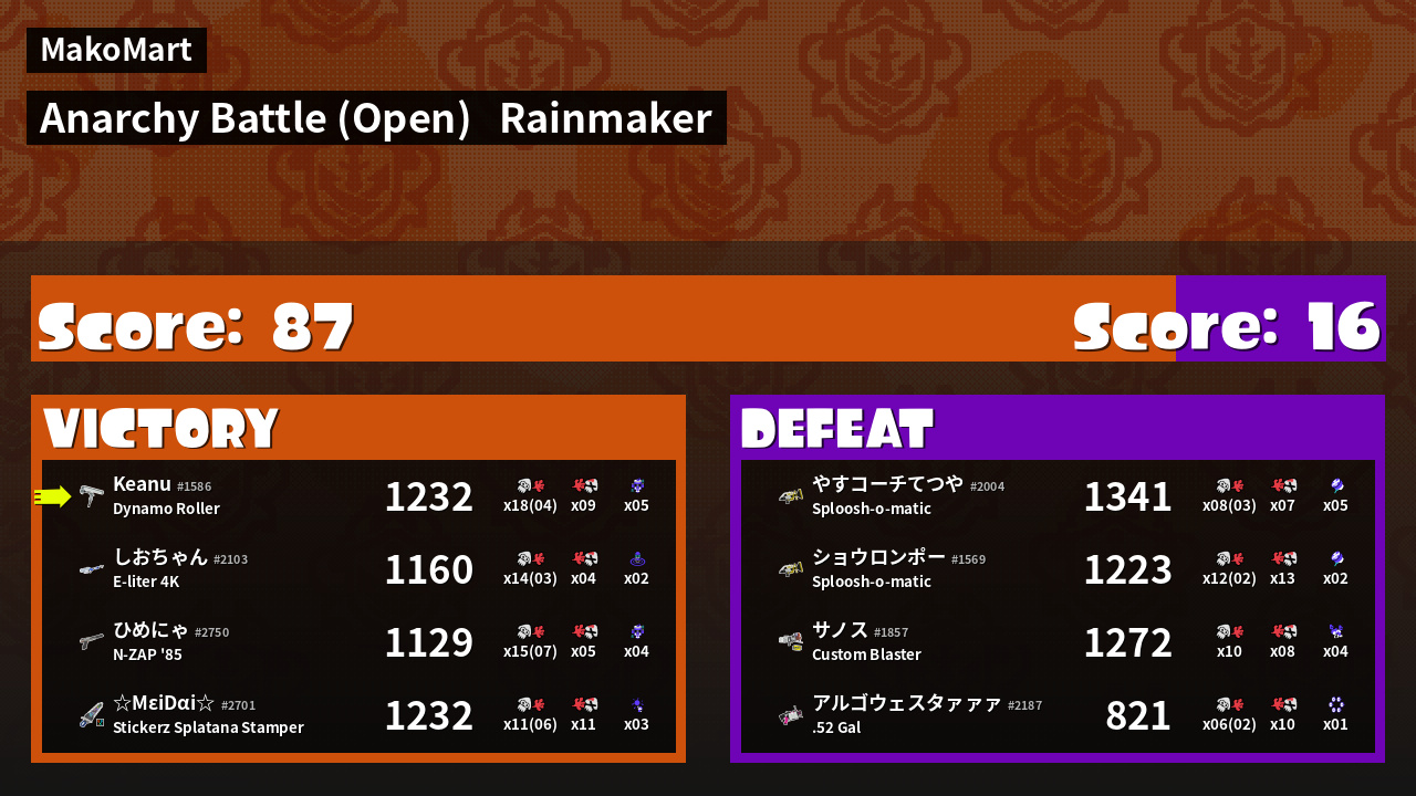| Mode | Rainmaker - Anarchy Battle (Open) | ||