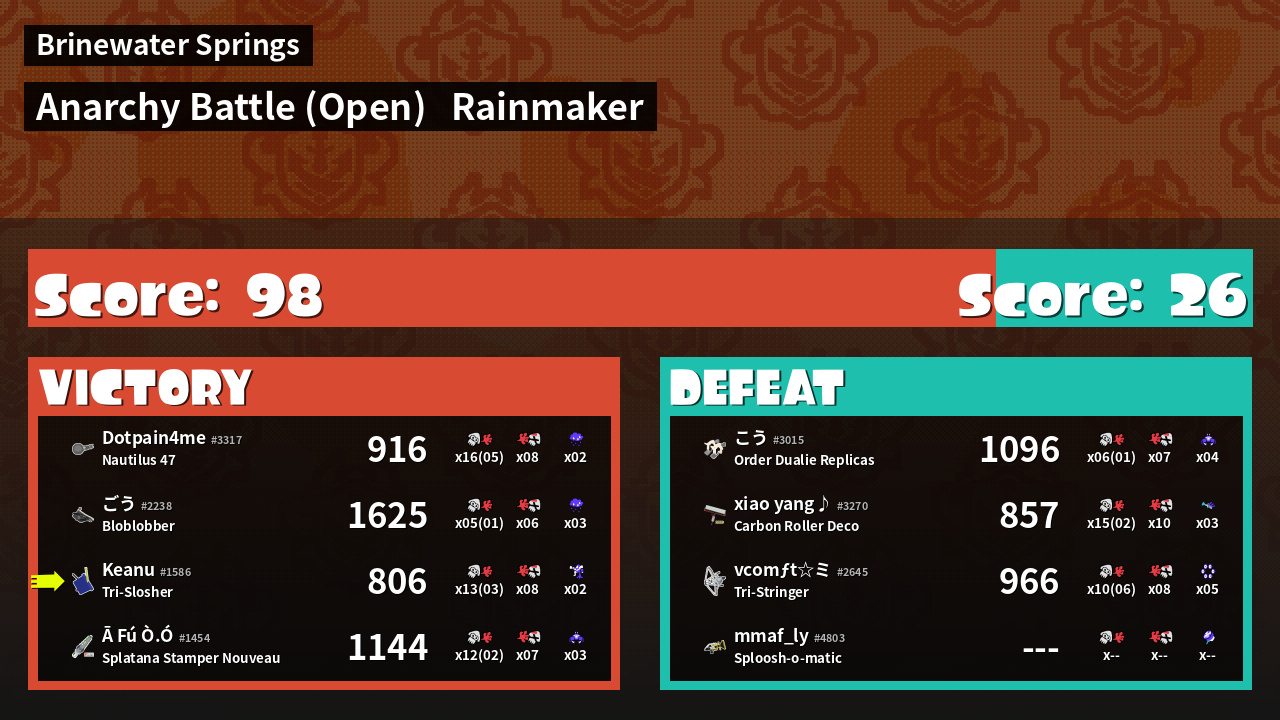 | Mode | Rainmaker - Anarchy Battle (Open) | ||
