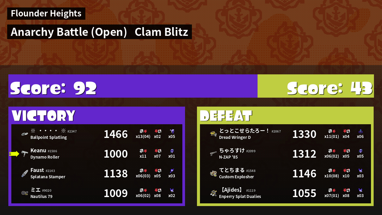 | Mode | Clam Blitz - Anarchy Battle (Open) | ||