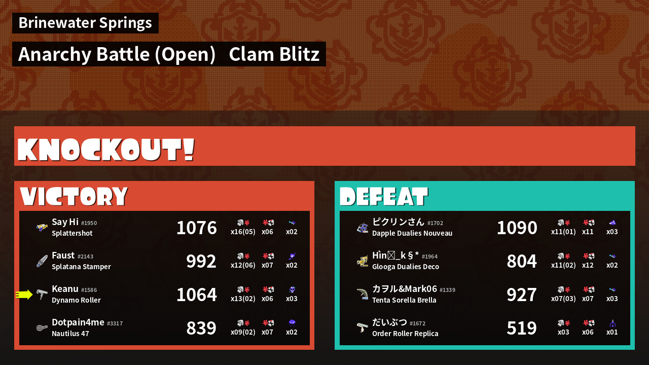 | Mode | Clam Blitz - Anarchy Battle (Open) | ||