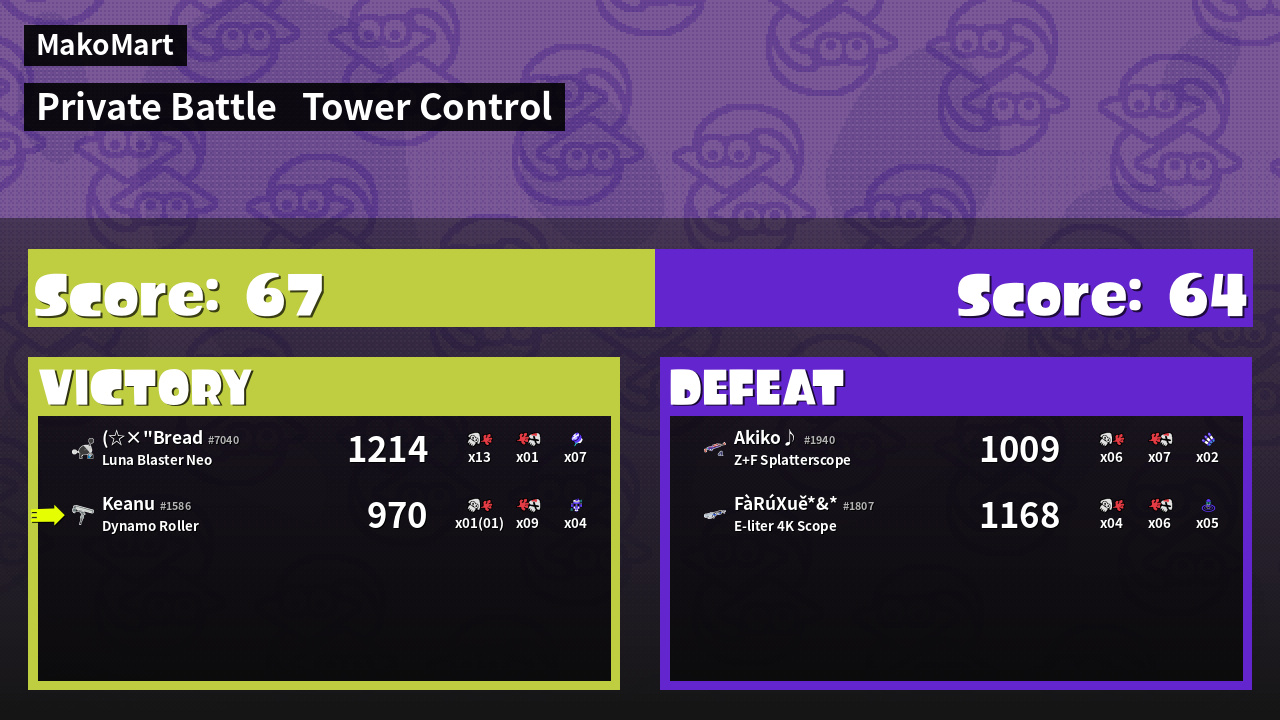 | Mode | Tower Control - Private Battle | ||