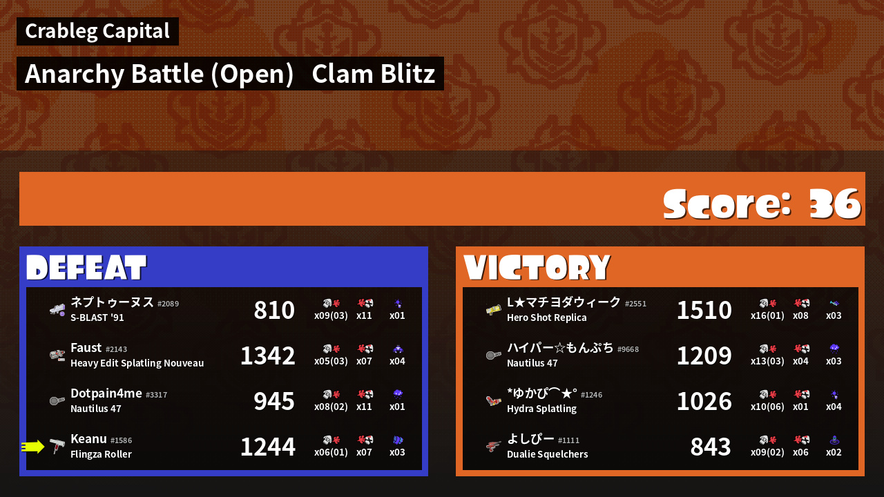 | Mode | Clam Blitz - Anarchy Battle (Open) | ||