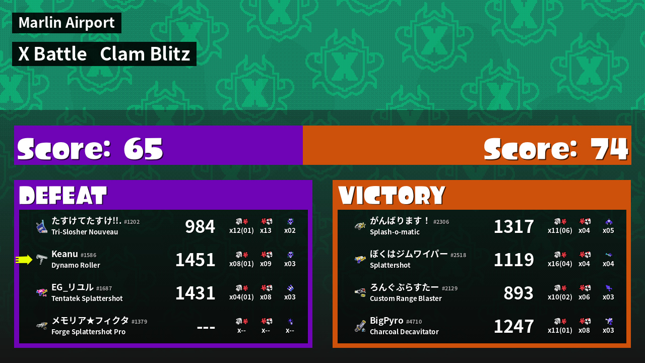 | Mode | Clam Blitz - X Battle | ||