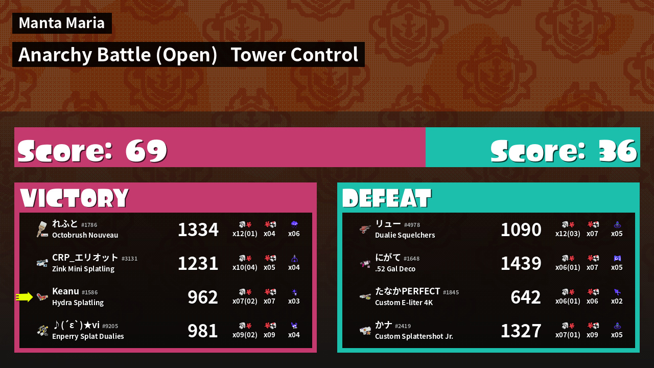| Mode | Tower Control - Anarchy Battle (Open) | ||