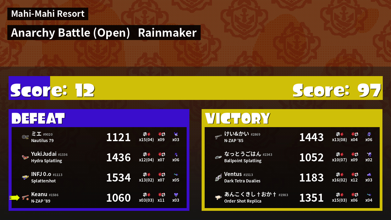 | Mode | Rainmaker - Anarchy Battle (Open) | ||