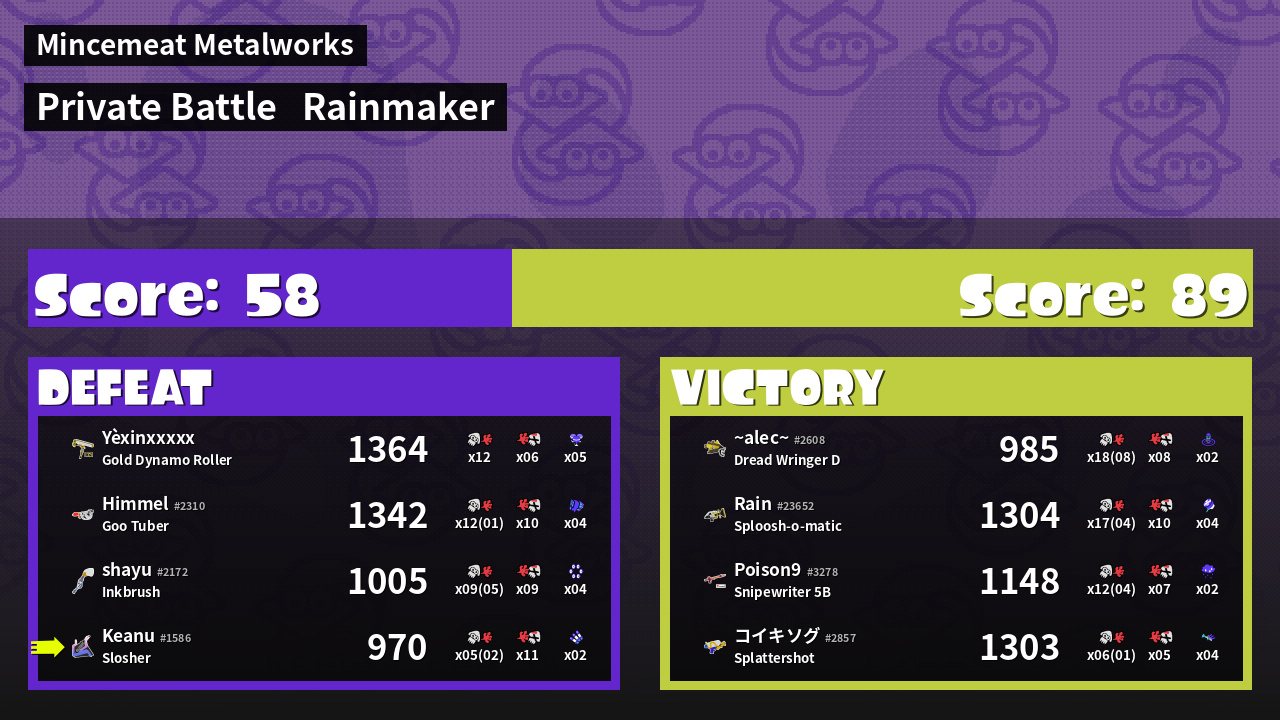 | Medals | #1 Ink Consumer #2 Splat Assister | ||