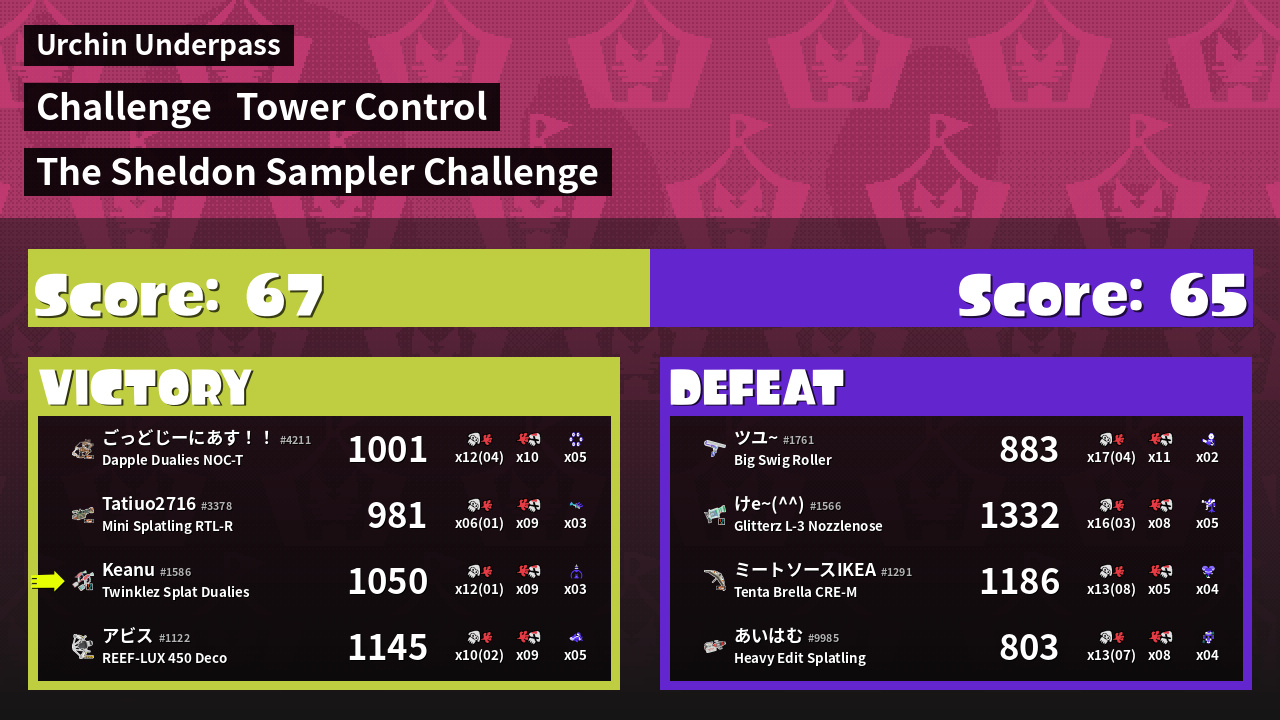 | Medals | #1 Overall Splatter #1 Enemy Splatter #1 Ink Consumer | ||