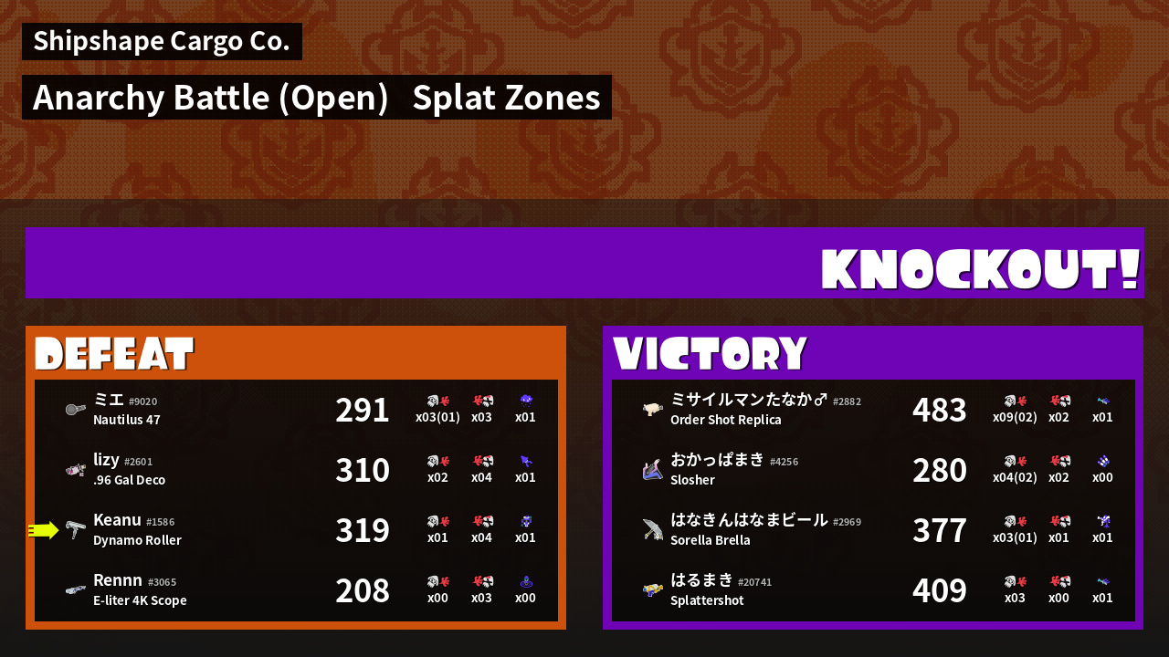 | Mode | Splat Zones - Anarchy Battle (Open) | ||