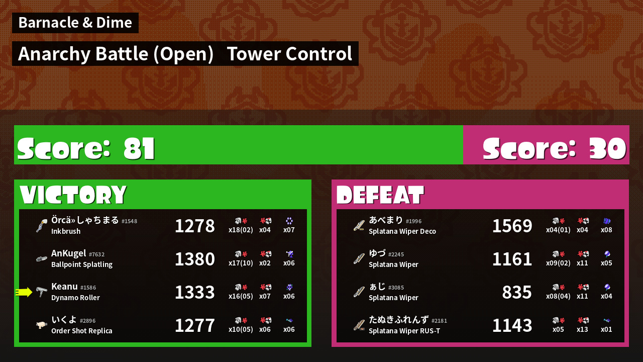 | Mode | Tower Control - Anarchy Battle (Open) | ||