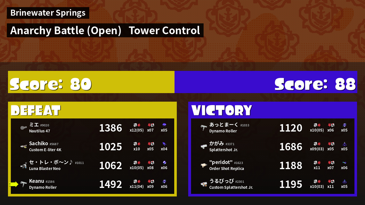 | Medals | #1 Turf Inker #1 Tacticooler User #2 Overall Splatter | ||