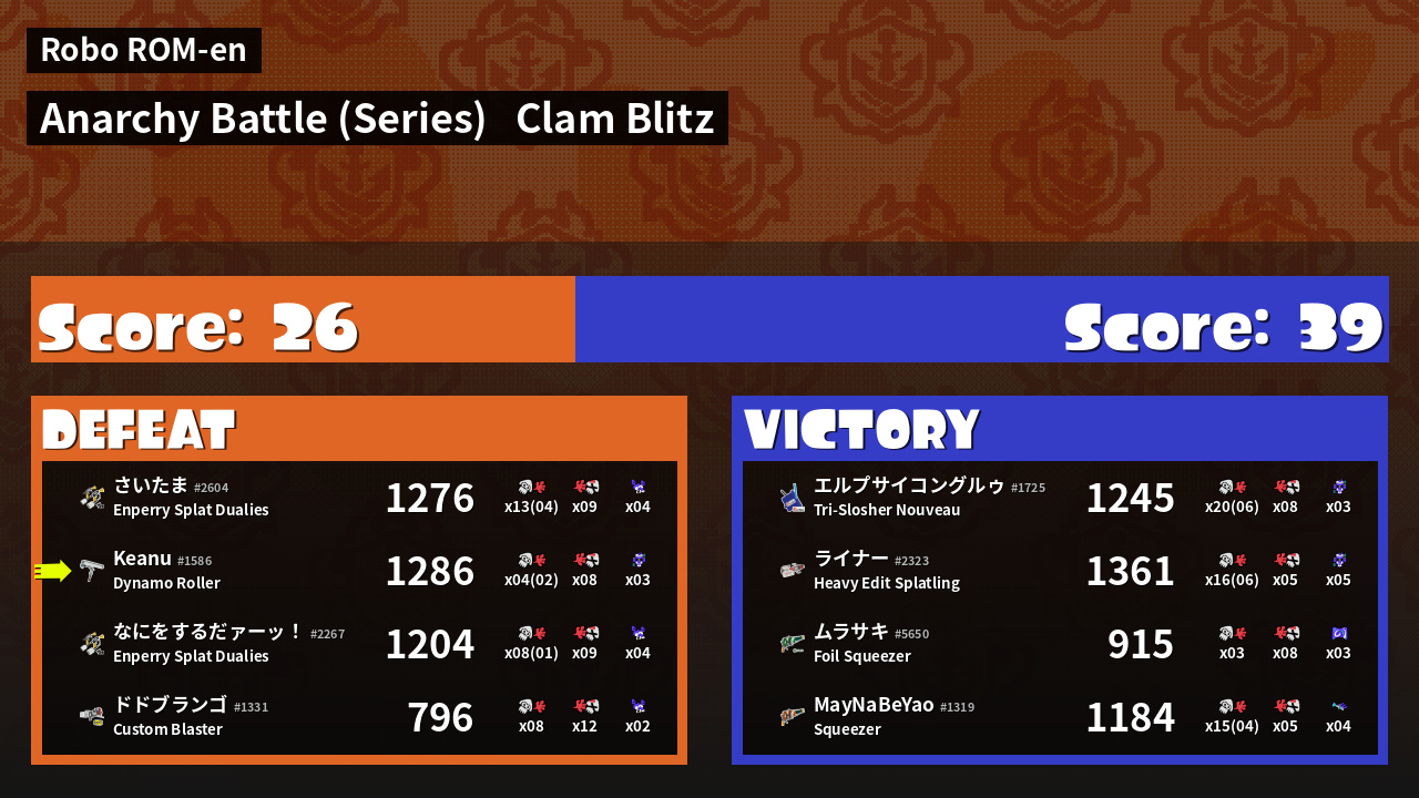 | Mode | Clam Blitz - Anarchy Battle (Series) | ||