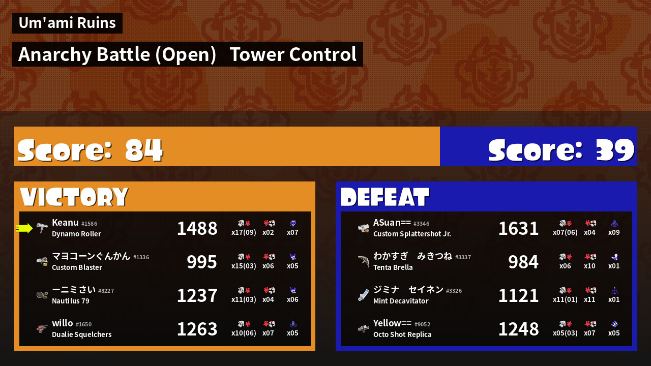 | Medals | #1 Overall Splatter #1 Score Booster #1 Turf Inker | ||