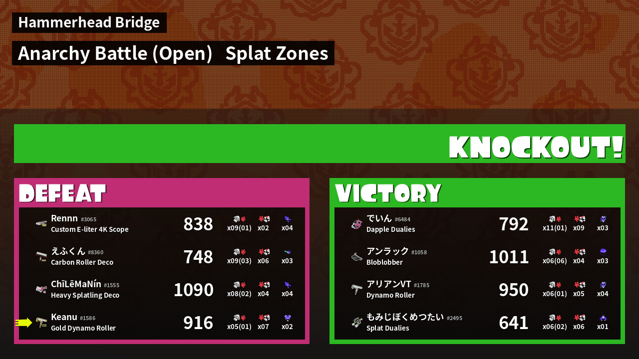 | Mode | Splat Zones - Anarchy Battle (Open) | ||