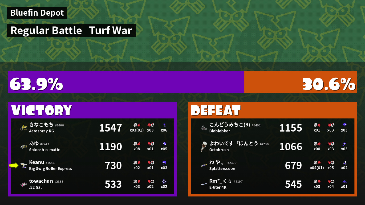 | Weapon | Big Swig Roller Express ( Angle Shooter / Ink Storm) | ||