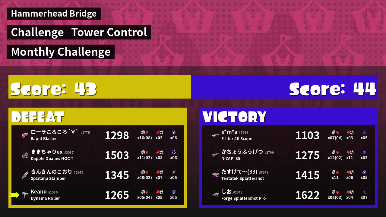 | Weapon | Dynamo Roller ( Sprinkler / Tacticooler) | ||