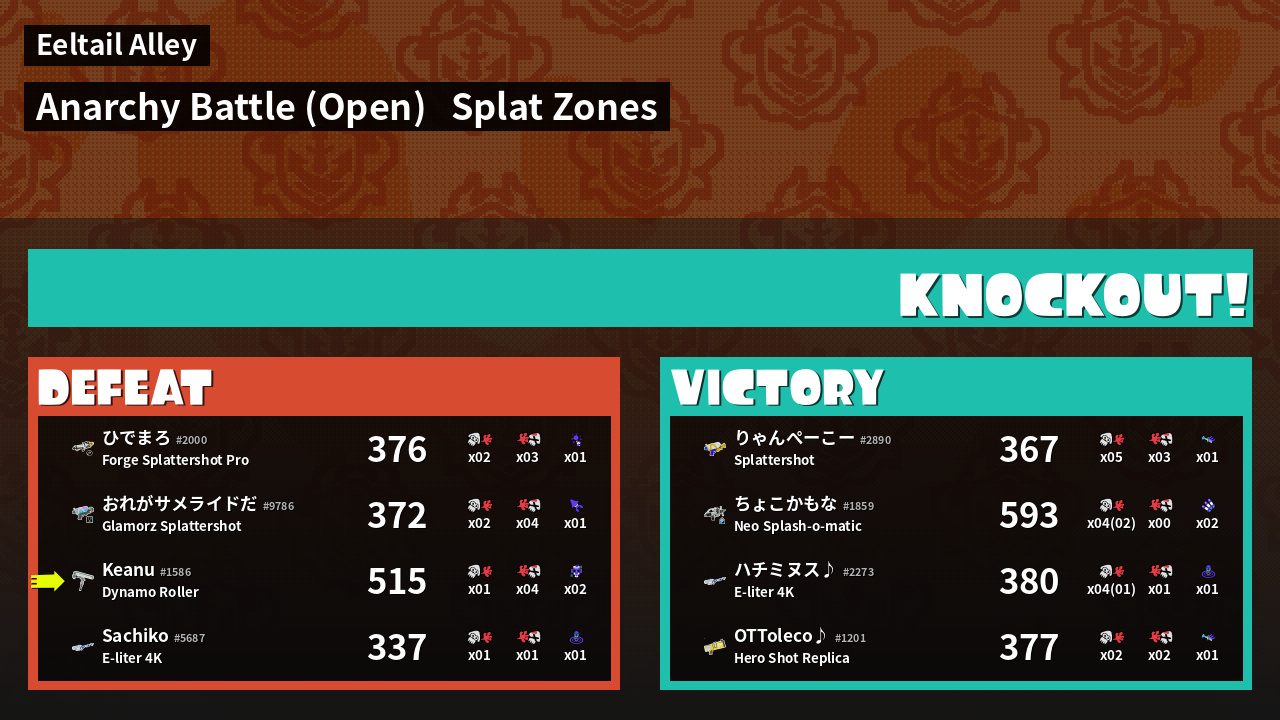| Mode | Splat Zones - Anarchy Battle (Open) | ||